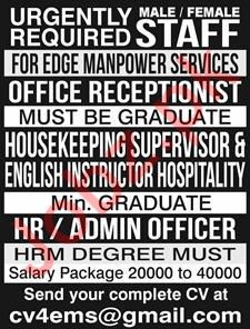 Vacancies in Edge Manpower Services Advertisement December 2019