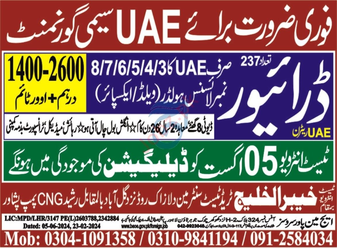 Apply at Edge Manpower Services latest Overseas jobs in Driving and departments before closing date which is around August 5, 2024 or as per closing date in newspaper ad. Read complete ad online to know how to apply on latest Edge Manpower Services job opportunities. On job accommodation, transport and medical facility is provided.