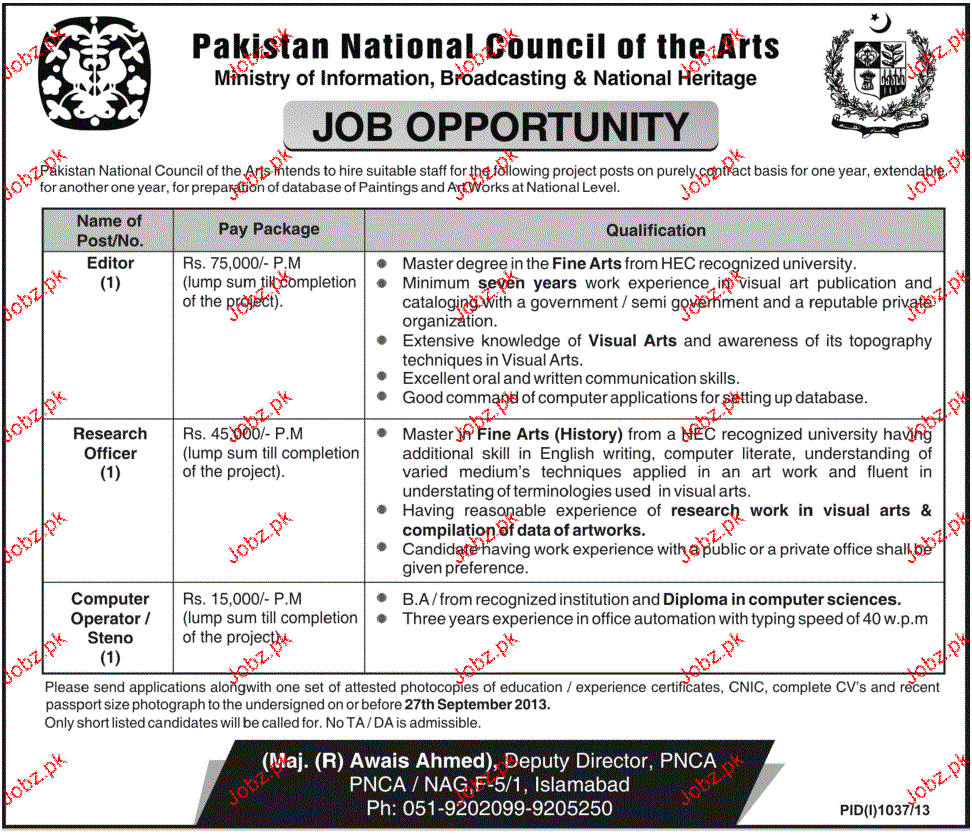 Apply as per details in job advertisement. Login to view further details of how to apply via https://www.jobz.pk online.