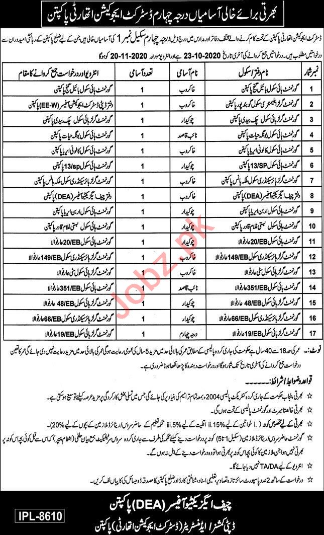 Latest District Education Authority DEA Labor Posts Pakpattan 2025