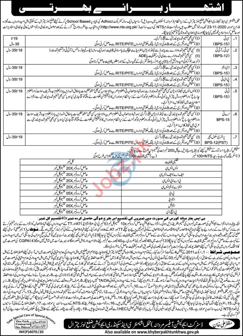 Education Department DEO Chitral Jobs 2020 For Teachers