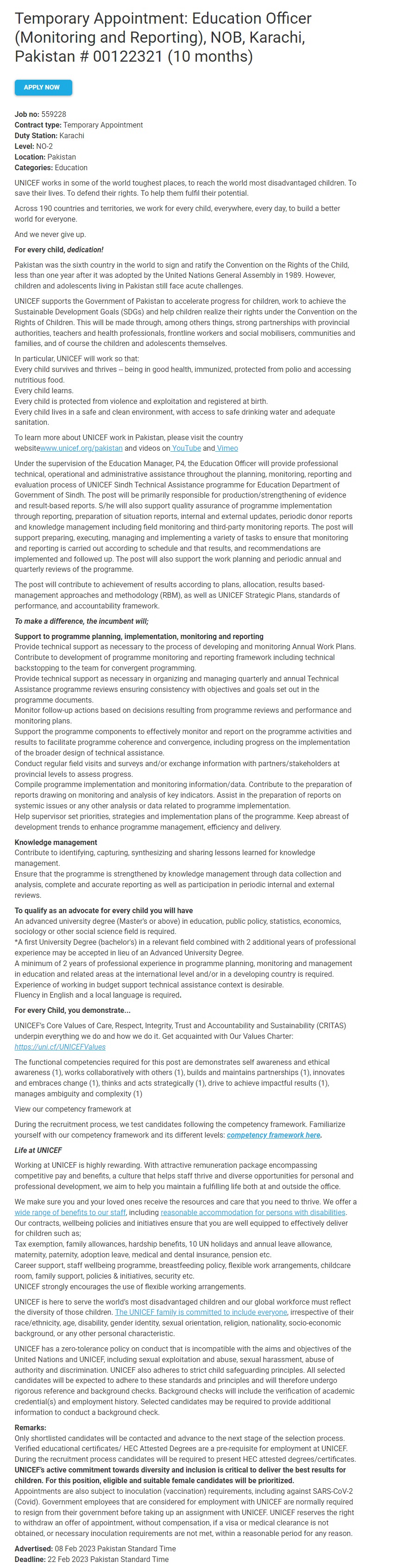 Original Source: https://jobs.unicef.org/en-us/job/559228/temporary-appointment-education-officer-monitoring-and-reporting-nob-karachi-pakistan-00122321-10-months