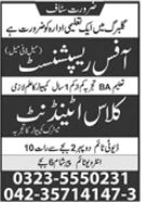 Candidates with Matric, Intermediate and Middle etc. educational background will be preferred.