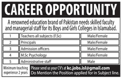 Apply as per details in job advertisement. Login to view further details of how to apply via https://www.jobz.pk online.