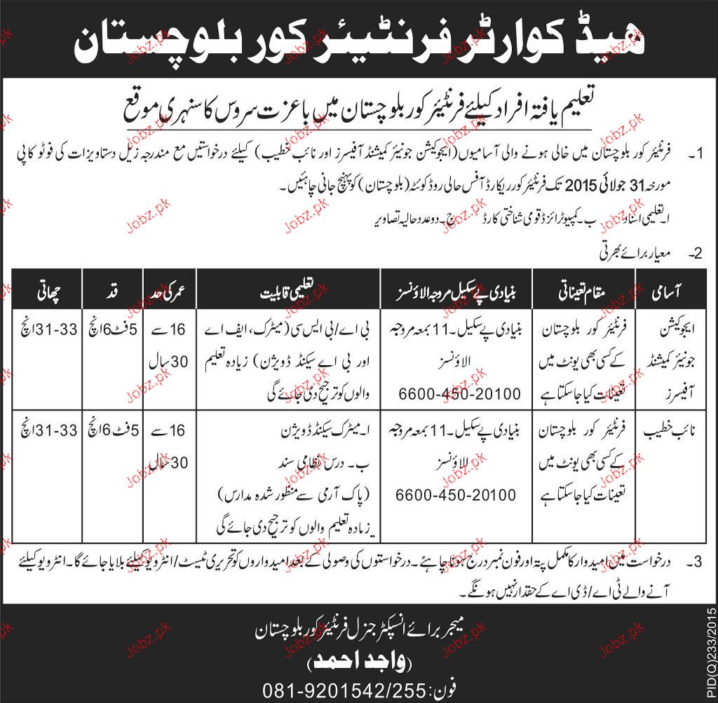 Apply as per details in job advertisement. Login to view further details of how to apply via https://www.jobz.pk online.