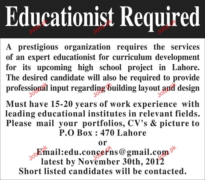 Educationist Required
