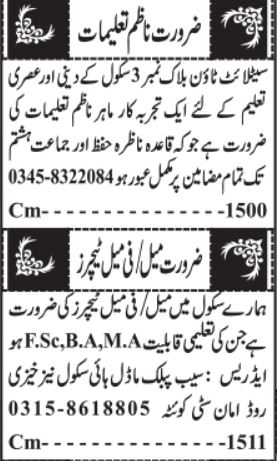 Vacant posts including teacher, female teacher and educator are announced in Educational Institute Quetta, quetta Balochistan Pakistan as per 25 February 2023 advertisement in daily Jang Newspaper. Preferred Education is Bachelor and Master etc.