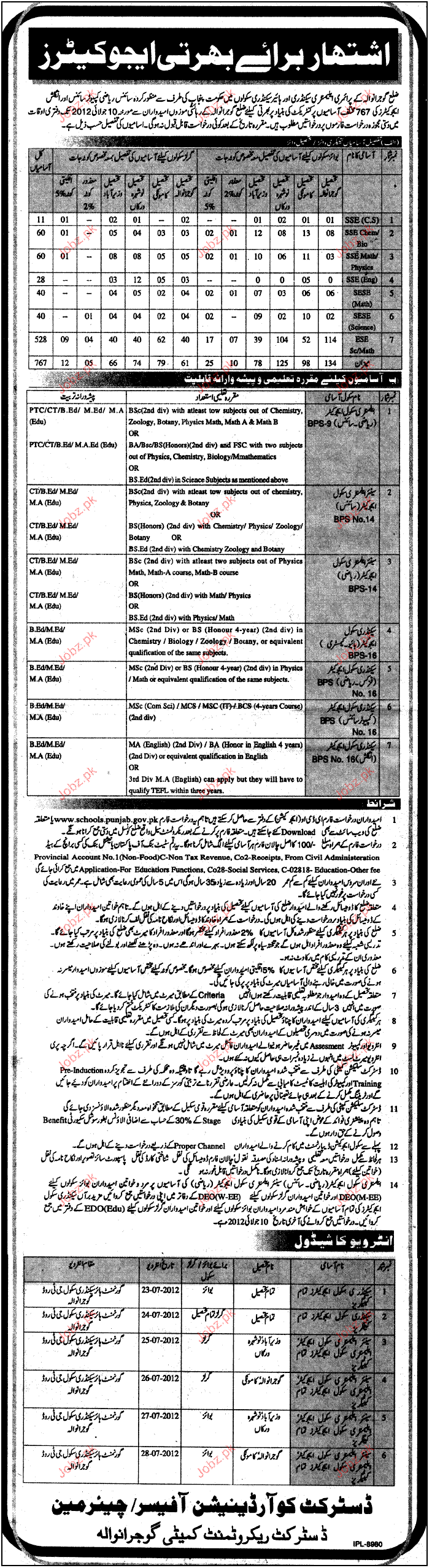 Latest Government Teaching Posts Gujranwala 2025