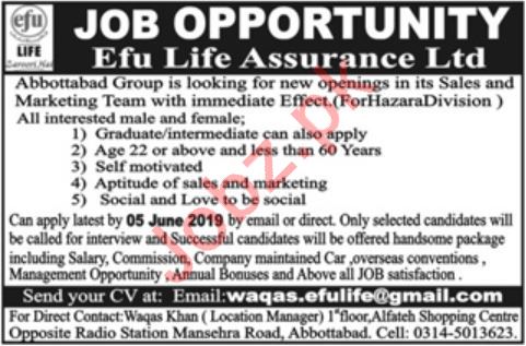 Efu Life Assurance Ltd Jobs 2019 For Abbottabad KPK