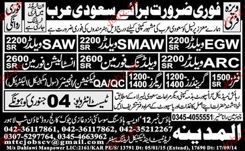 EGW Welders, SMAW Welders, Fitters Job Opportunity