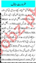 Ehsaas Education System Peshawar Jobs For Teaching Staff