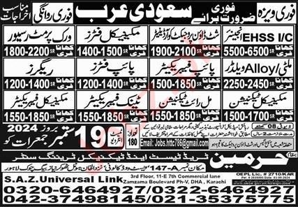 SAZ Universal Link is looking for candidates for following posts as per job advertisement published in daily Express Newspaper of September 8, 2024 for location Riyadh, riyadh Saudi Arabia: