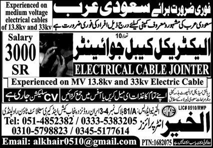 Electrical Cable Jointer Jobs 2023 in Saudi Arabia