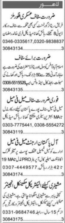 Private Company Lahore, rawalpindi Punjab Pakistan invites applications from eligible candidates for the post of manager, office staff, clerk, call operator, public relation officer, helper, engineer, mechanical engineer, electrical engineer, pro and accountant as per advertisement of February 10, 2023 published in daily Express Newspaper. Educational qualifications required Bachelor, Middle, Intermediate and Matric etc.