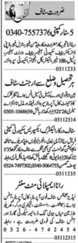 Vacant posts including hr manager, phone operator, chief warrant officer, house servant, office boy, electrical engineer, retired navy staff, supervisor, principal, retired air force staff, field worker, admin manager, security guard, deputy director, manager, receptionist, cook, chief security officer, security supervisor, retired army staff, driver, retired government staff, call operator, clerk, assistant, factory worker, accountant and general manager are announced in Private Lahore, lahore Punjab Pakistan as per 3 November 2023 advertisement in daily Dunya Newspaper. Preferred Education is Intermediate, Middle, Bachelor, Master and Matric etc.