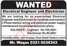 Vacant posts including electrical engineer and electrician are announced in Private Company Manufacturing Lahore, lahore Punjab Pakistan as per 6 October 2024 advertisement in daily Jang Newspaper. Persons with Matric, DAE and Intermediate etc. education can apply.