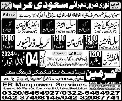 Harmain Trade Test & Technical Training Center invites applications for job positions advertised in daily Express dated 1 February 2024 for following vacancies in Dammam, riyadh Saudi Arabia.
