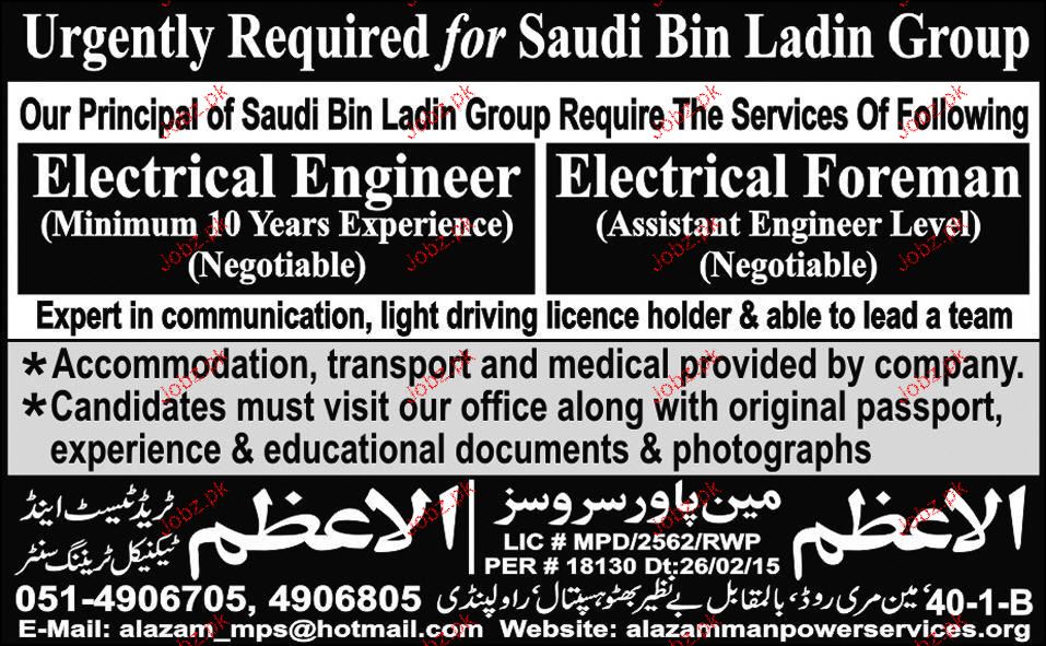 Electrical Engineers, Electrical Foreman Job Opportunity