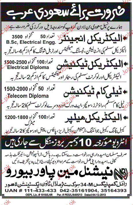 Electrical Engineers, Electrical Technicians Job Opportunity