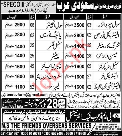Civil Supervisor, Civil Engineer, Electrical Foreman, Piping Foreman, Shuttering Carpenter, Steel Fixer, Mason, Painter, Steel Structure Fitter, Plumber, Pipe Fitter, Electrical Fitter, Instrument Control Fitter, Electrician, Labor seeks in well developed company.