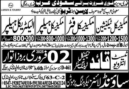 Quaid Technical Training Center invites applications for job positions advertised in daily Express dated 29 January 2025 for following vacancies in Riyadh, dammam Saudi Arabia.