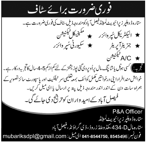 Apply as per details in job advertisement. Login to view further details of how to apply via https://www.jobz.pk online.