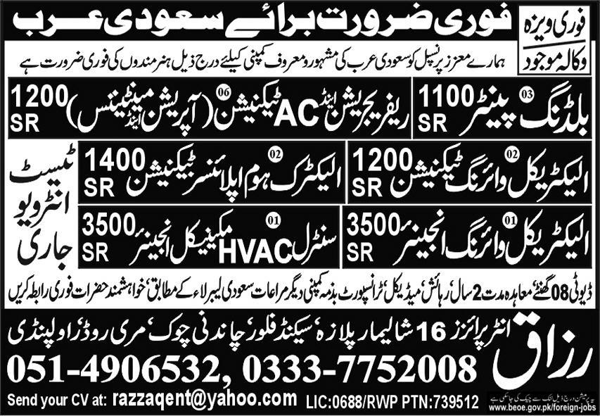 Latest Razzaq Enterprises Engineering Posts Saudi Arabia 2025