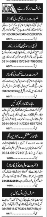 Private jobs advertisement dated about 22 November 2022 in daily Khabrain Newspaper invites application for the vacant post of driver, house servant, office boy, electrician, retired government staff, civil guard, security guard, retired havaldar, cook, fauji guard, retired jco and security supervisor in Islamabad, islamabad Islamabad Pakistan. Intermediate, Matric, Middle and Primary etc. educational qualification will be preferred.