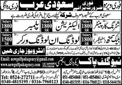 Latest New Gulf Pak Recruiting Agency Construction Posts Jeddah 2025