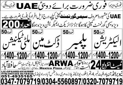 New Brand Manpower jobs advertisement dated about 21 August 2025 in daily Express Newspaper invites application for the vacant post of electrician, plumber, duct man and multi technician in Dubai, abu dhabi Dubai. Candidates with Matric, Intermediate and DAE etc. educational background will be preferred.