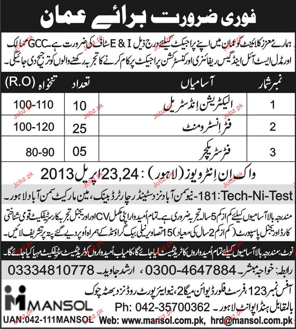 Apply as per details in job advertisement. Login to view further details of how to apply via https://www.jobz.pk online.