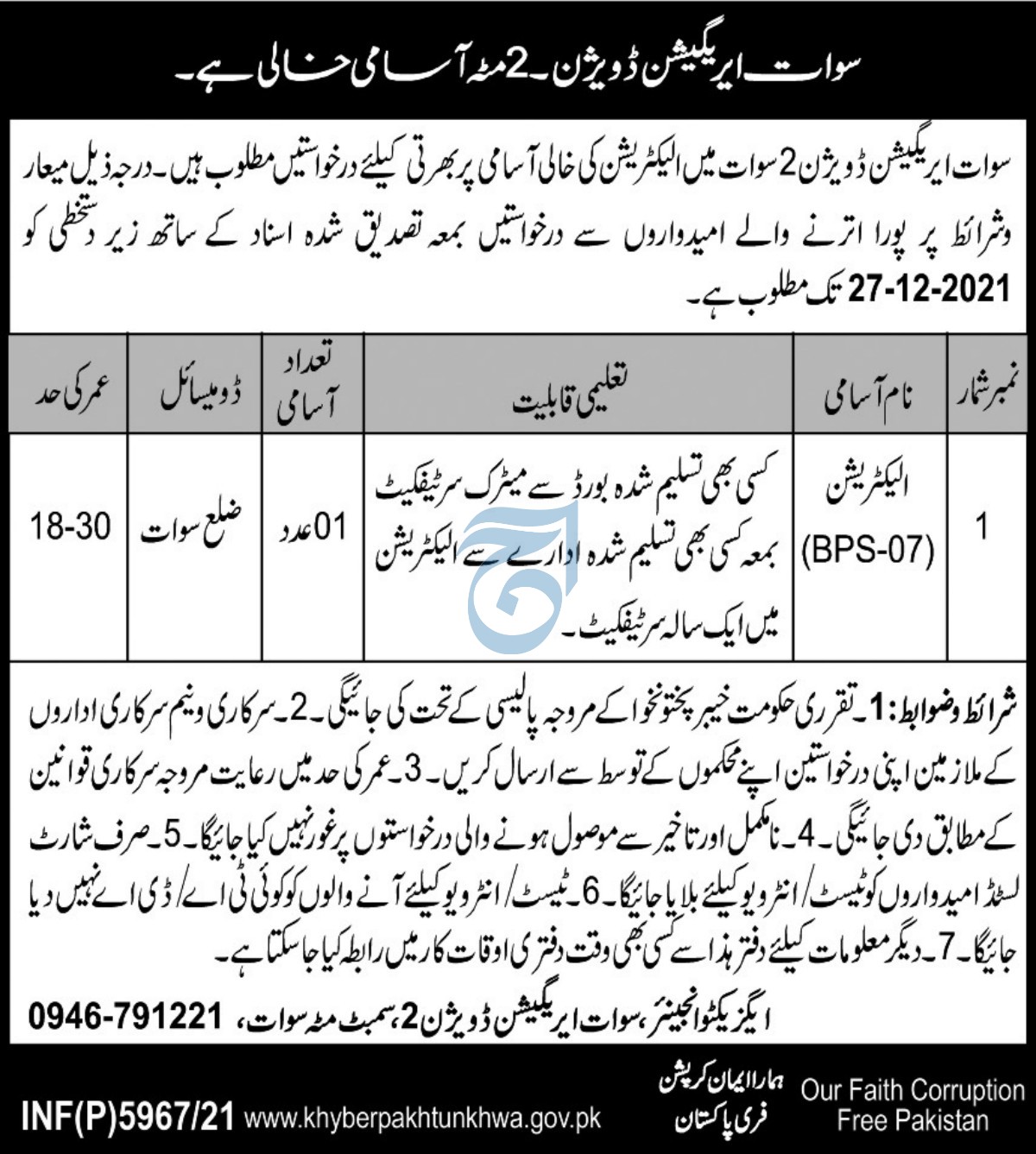 Vacancies in Swat Irrigation Circle Advertisement December 2021