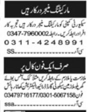 Private Company Islamabad, islamabad Islamabad Pakistan invites applications from eligible candidates for the post of office boy, security guard, marketing manager, cook, house servant, electrician and driver as per advertisement of July 4, 2024 published in daily Khabrain Newspaper. Candidates with Matric, Bachelor, BA, Middle and Intermediate etc. educational background will be preferred.