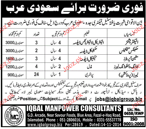 Apply as per details in job advertisement. Login to view further details of how to apply via https://www.jobz.pk online.