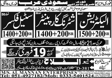 New Al Falah Trade Test & Training Center is looking for candidates for following posts as per job advertisement published in daily Express Newspaper of February 12, 2025 for location Riyadh, makkah Saudi Arabia: