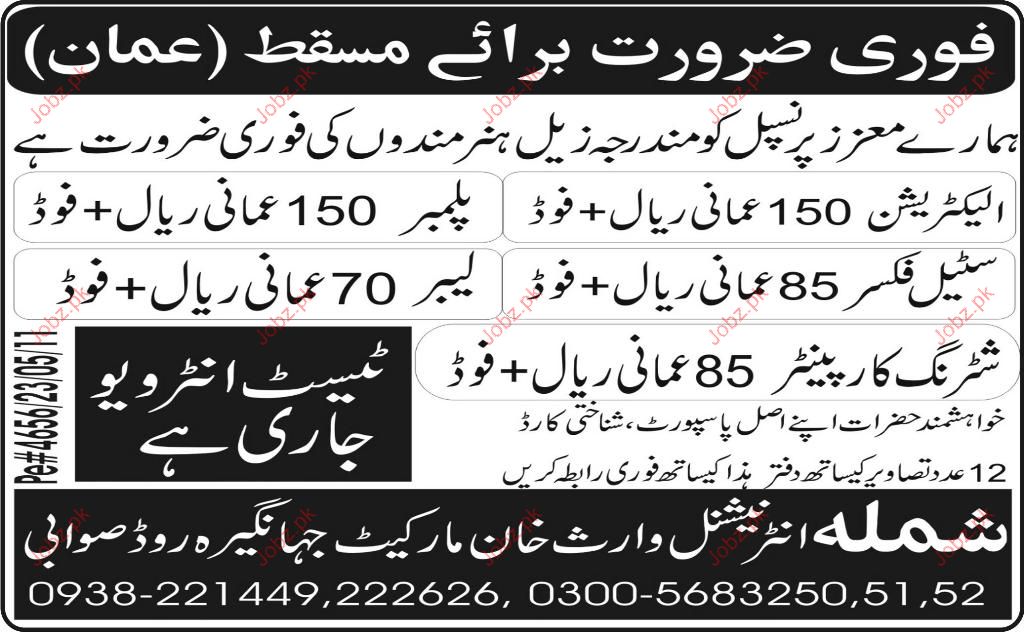 Electrician, Steel Fixer, Plumber Job Opportunity