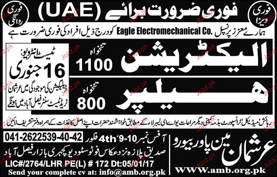 Electricians And Electrician Helpers Job Opportunity