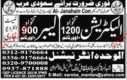 Electricians and Labors Job Opportunity
