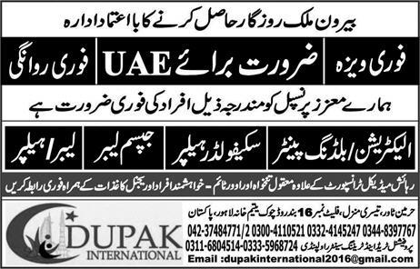 Latest Dupak Developers Pakistan Pvt Ltd Industrial Posts UAE 2025