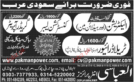 Electricians, Construction Labors, Grader Operators Wanted