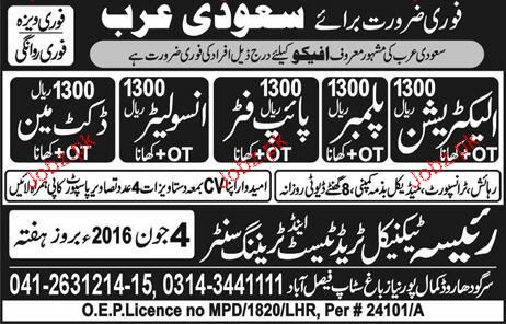 Electricians, Ductman, Plumbers And Pipe Fitters Wanted