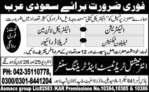Electricians, Electrical Lineman, Tralla Drivers Required
