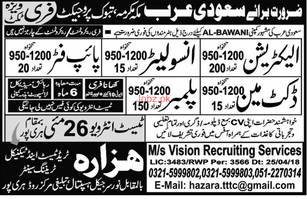 Latest Hazara Trade Test and Technical Training Center Industrial Posts Saudi Arabia 2025