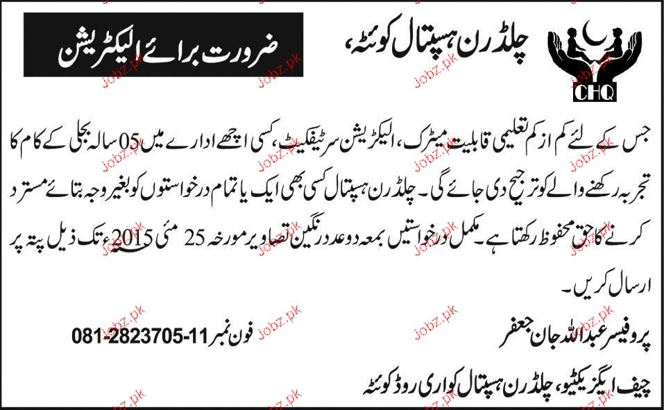 Apply as per details in job advertisement. Login to view further details of how to apply via https://www.jobz.pk online.
