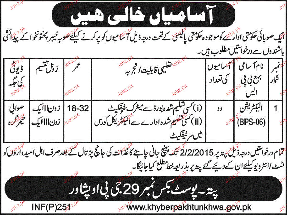Apply as per details in job advertisement. Login to view further details of how to apply via https://www.jobz.pk online.
