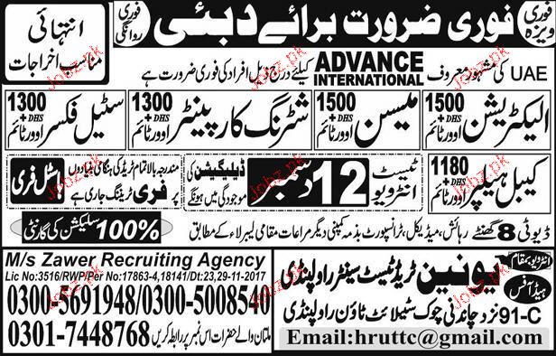 Electricians, Mason, Shuttering Carpenters Job Opportunity