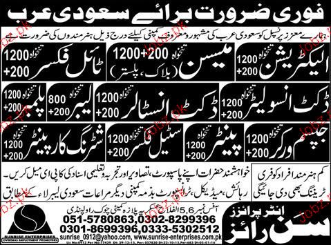 Electricians, Mason, Tile Fixers, Duct Insolators Wanted