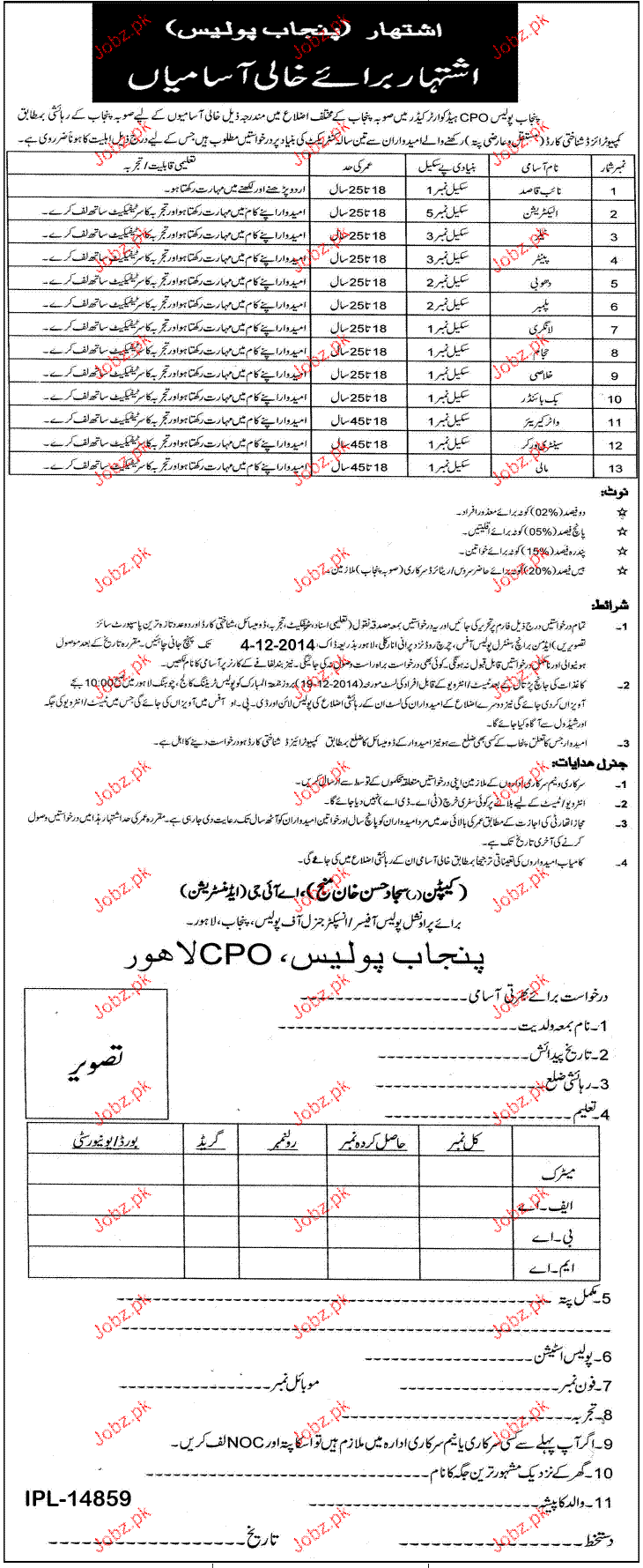 Electricians, Naib Qasid, Helpers, Plumbers Job in Punjab P