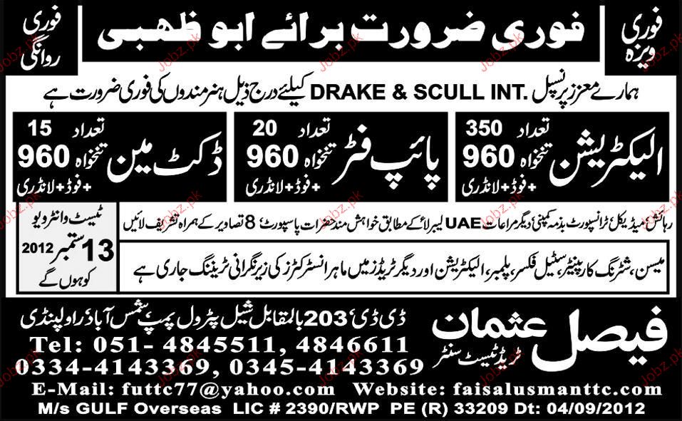 Electricians, Pipe Fitters And Ducktman Job Opportunity