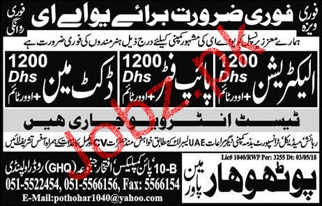 Latest Potohar Manpower Industrial Posts UAE 2025